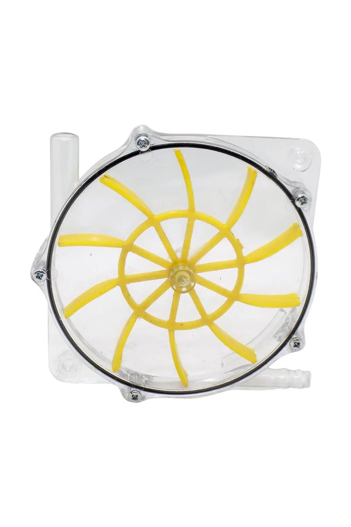 Enerji dönüşümünün açıklanmasında kullanılır. Giriş ağzından gelen basınçlı su ile kanatlar dönmeye başlar. Geniş tahliye deliği kolay boşaltım sağlar. Üfleme ile elde edilen basınçlı hava ile de kanatlar kolaylıkla dönebilir.